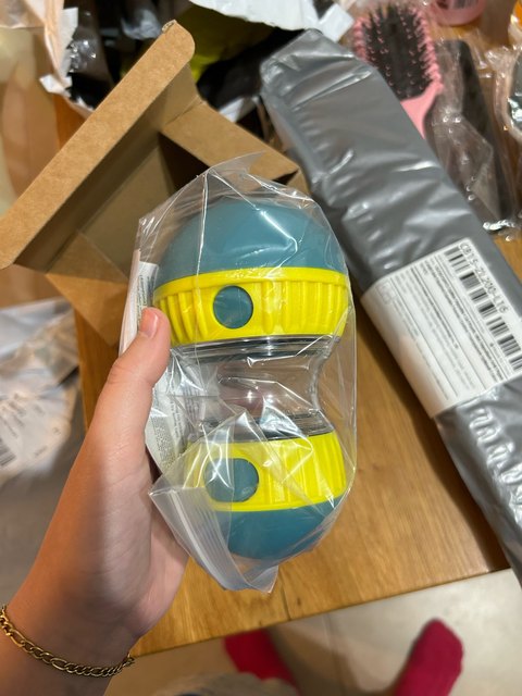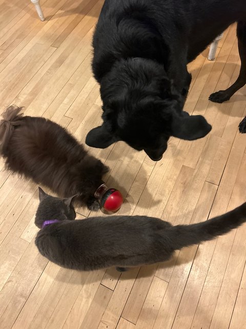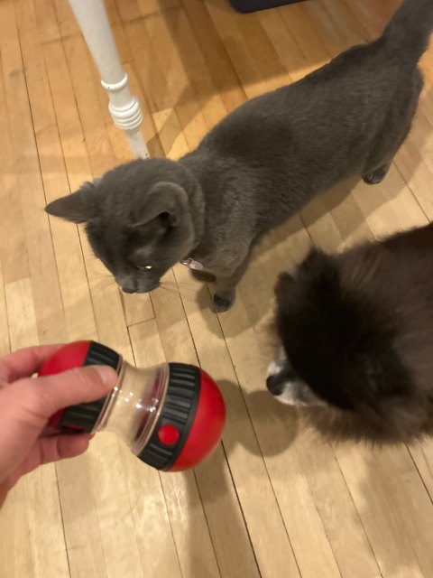 Dog and cat love this. Already biting the box I store it in to get at it. Shipping was accurate as described and package was adequately wrapped. Item is sturdy and well made. I can select a little dispersed amount or alot. It’s fun to watch them figure out how to get more and see them happy. A toy for years to come as its made well and will last if they don’t figure out how to launch this downstairs to break on the cement floor. Wife says I am feeding them too. But you can give them their meals using this and its helps to encourage slow eating habits.