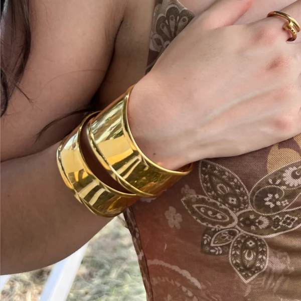 ✨ Uworld Gold PVD Plated Wide Cuff Bracelet – Waterproof Stainless Steel Bangle for Women